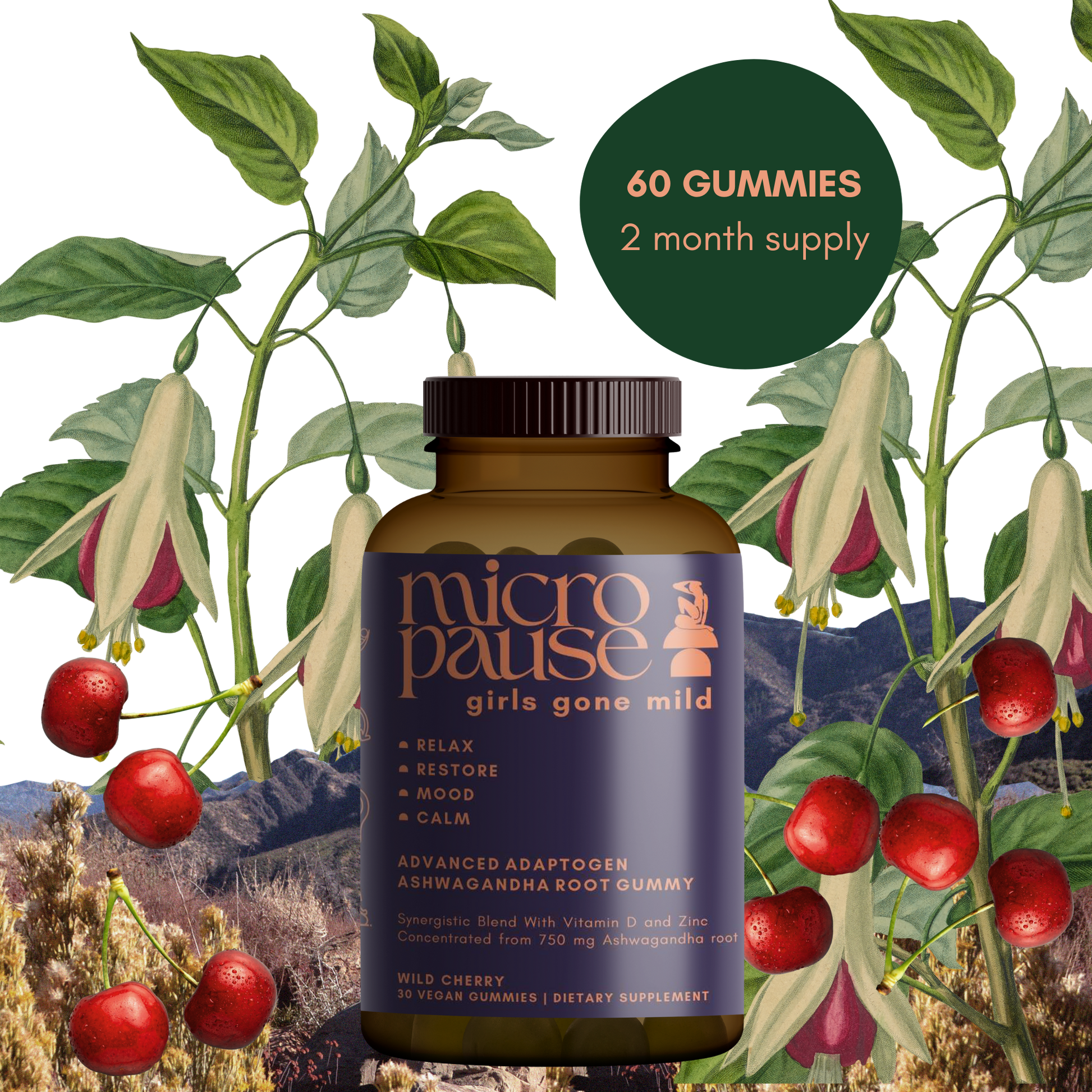 Ashwagandha is an herbal adaptogenic root commonly used in Ayurvedic medicine to support overall health and wellness. Ashwagandha has been shown to support the body during the transition to menopause by reducing symptoms such as hot flashes, night sweats, mood swings, and anxiety. It has been shown to regulate hormone levels, reduce stress, and improve mood. Additionally, Ashwagandha has anti-inflammatory and antioxidant properties that help improve overall health and support the immune system.